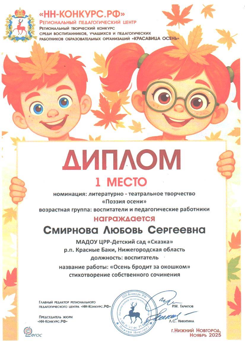 Смирнова Любовь Сергеевна - воспитатель МАДОУ ЦРР д/с "Сказка" р.п.Красные Баки