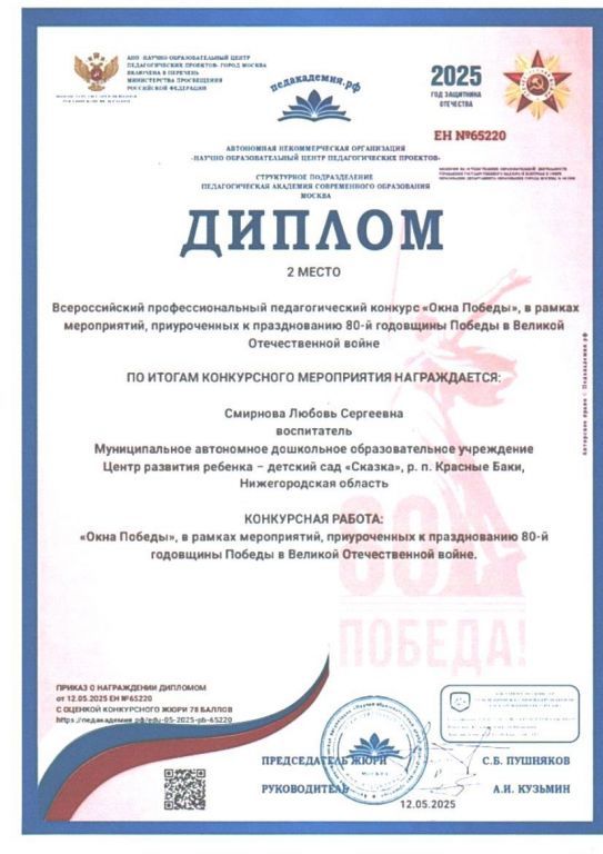 Смирнова Любовь Сергеевна - воспитатель МАДОУ ЦРР д/с "Сказка" р.п.Красные Баки