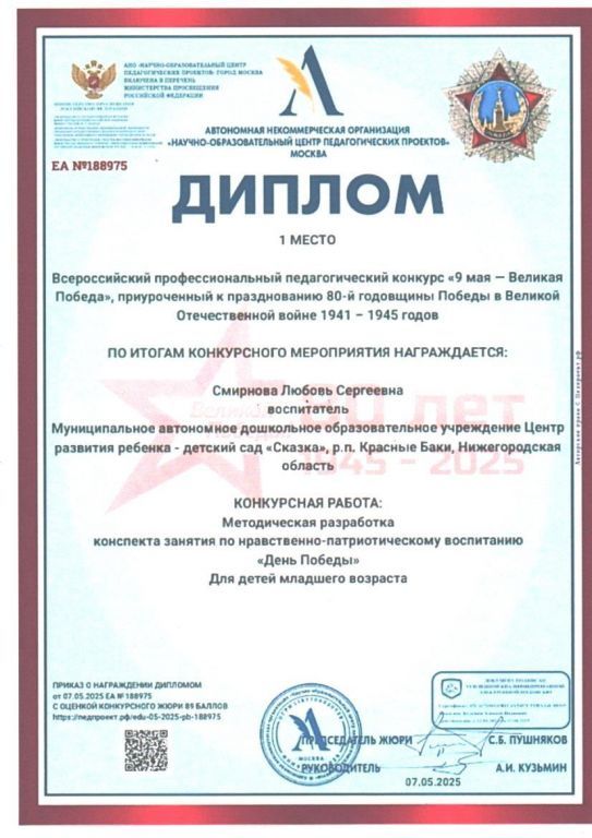 Смирнова Любовь Сергеевна - воспитатель МАДОУ ЦРР д/с "Сказка" р.п.Красные Баки