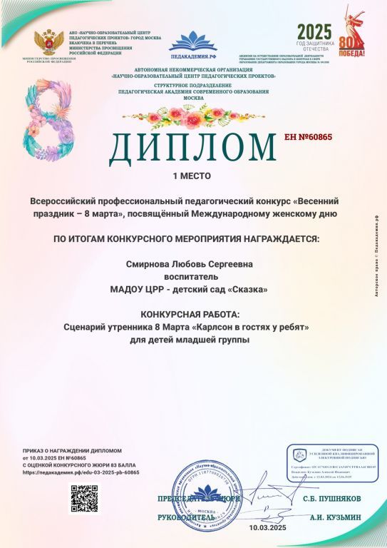Смирнова Любовь Сергеевна - воспитатель МАДОУ ЦРР д/с "Сказка" р.п.Красные Баки