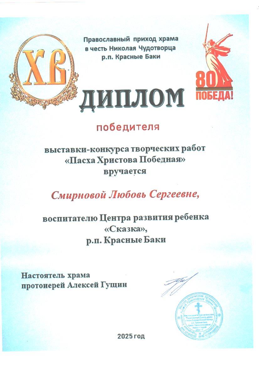 Диплом Победителя в конкурсе "Пасха Христова Победная"