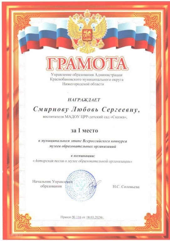Смирнова Любовь Сергеевна - воспитатель МАДОУ ЦРР д/с "Сказка" р.п.Красные Баки