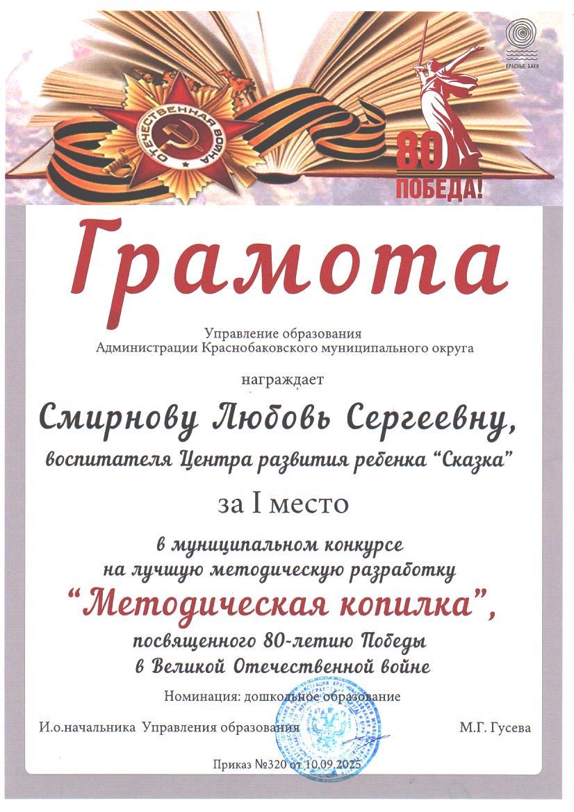 Смирнова Любовь Сергеевна - воспитатель МАДОУ ЦРР д/с "Сказка" р.п.Красные Баки
