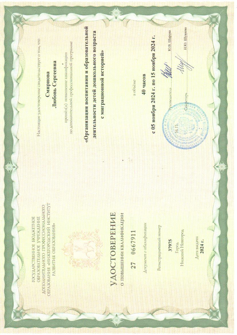 Прошла курсы повышения квалификации по дополнительной программе "Организация воспитания и образовательной деятельности детей дошкольного возраста с миграционной историей" 40 часов