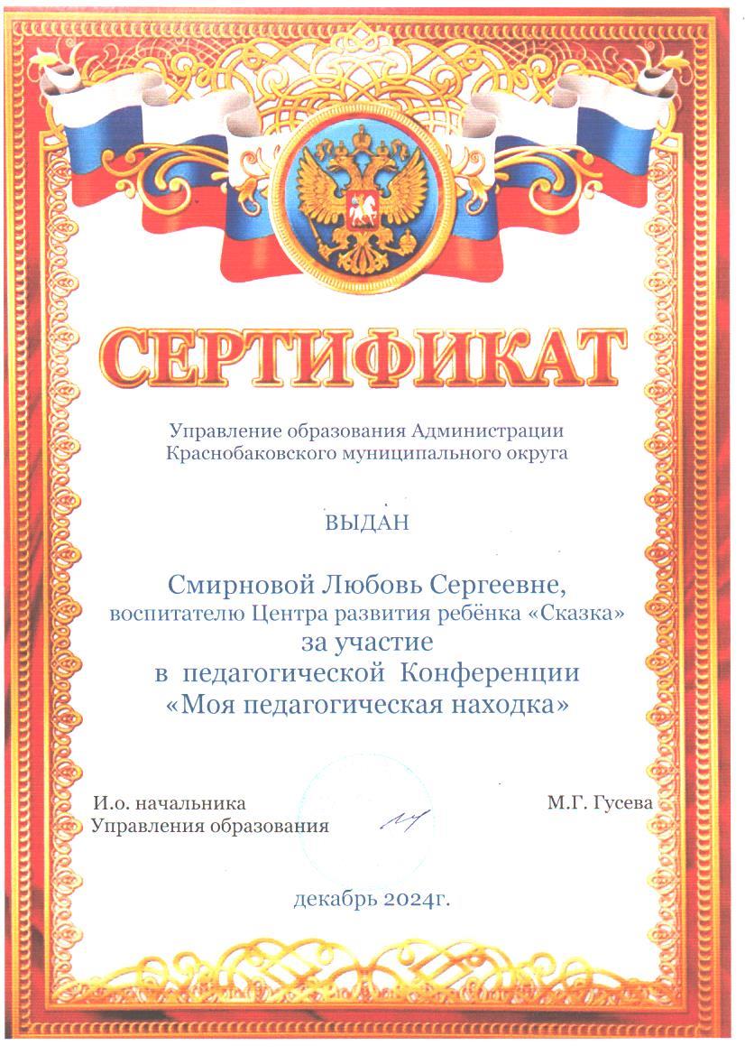 Смирнова Любовь Сергеевна - воспитатель МАДОУ ЦРР д/с "Сказка" р.п.Красные Баки